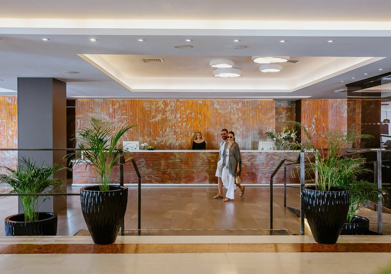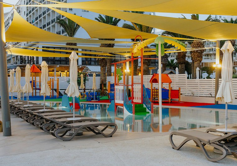Die öffentlichen Bereiche sind klar gegliedert: großzügige Lobbyzonen, Gartenflächen und Sonnenterrassen führen zu drei Außenpools, einem Kinderbecken und einer Wasserrutsche. Liegen am Pool sind inklusive. Kostenloses WLAN, drei Lifte und eine 24-Stunden-Rezeption halten Wege kurz und Entscheidungen leicht. Parkplätze sind kostenfrei vorhanden.