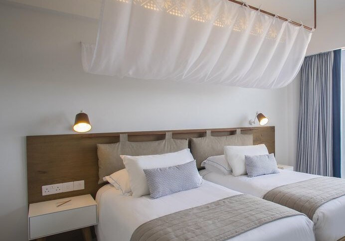 Direkt am Sandstrand von Larnaca Bay wohnt Ihr im Lordos Beach Hotel mit kurzer Verbindung ans Meer und entspannter Strandatmosphäre. Nach Larnaca sind es etwa 9 Kilometer, der Flughafen LCA liegt rund 21 Kilometer entfernt. Supermarkt, Bars und Restaurants erreicht Ihr nach ungefähr 200 Metern – praktisch für spontane Besorgungen und kleine Wege zwischendurch. Eine Strandbar ergänzt das Angebot unmittelbar am Wasser.