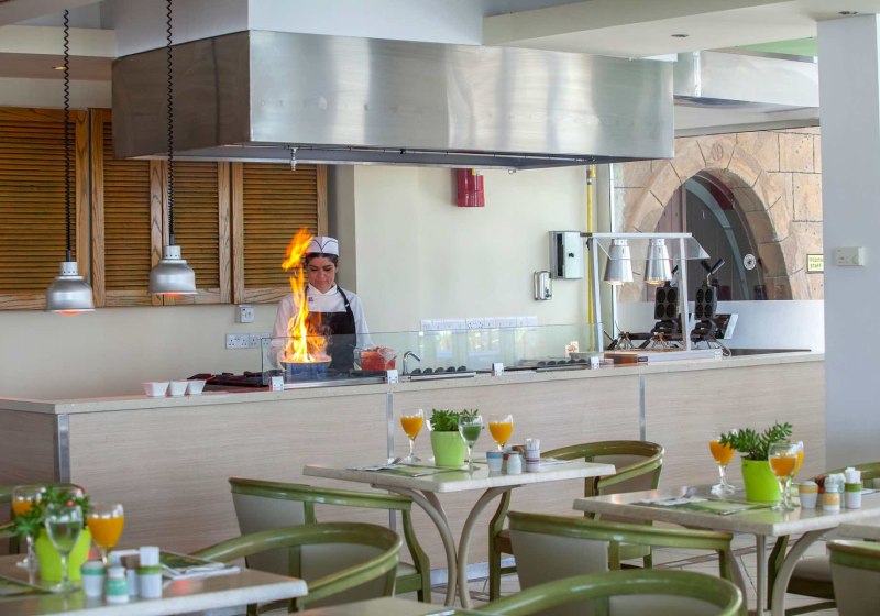 Im Restaurant startet Ihr mit einem Frühstücksbuffet in den Tag. Mittags und abends wählt Ihr zwischen Halbpension, Vollpension oder à la carte Optionen innerhalb des angebotenen Spektrums. Vegetarische Kost und Kindermenüs sind vorgesehen, dazu Snacks und ein Sortiment alkoholfreier sowie alkoholischer Getränke.