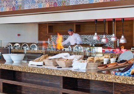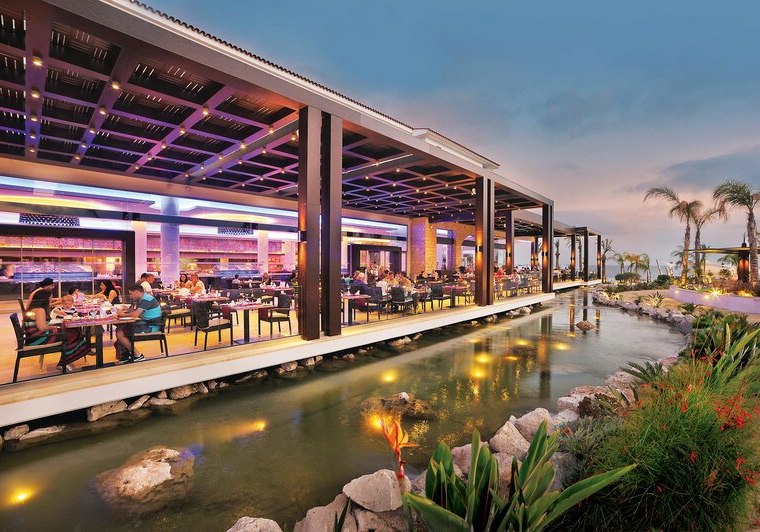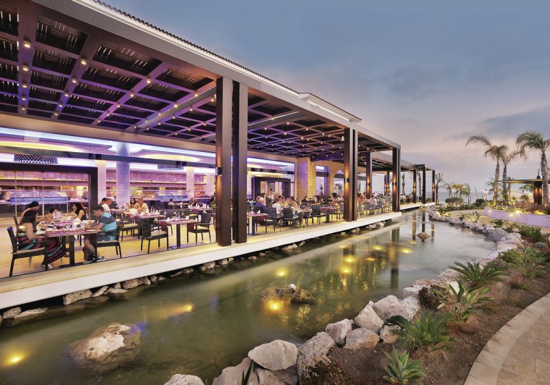 Sechs Restaurants – vier innen, zwei im Freien – verteilen Eure Mahlzeiten auf unterschiedliche Settings. Ergänzend warten drei Innenbars und zwei Poolbars auf Euch. Bei den Verpflegungen reicht die Spannweite von Frühstück bis All-Inclusive, inklusive Snacks und alkoholfreier wie alkoholischer Getränke. Highlight: Vielseitige Restaurant- und Barlandschaft.