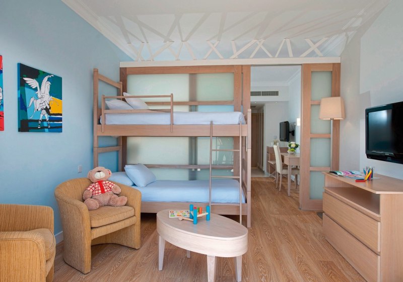 Kaffee-/Teezubereiter und Minikühlschrank/Minibar erleichtern den Tagesablauf. Familien wählen Juniorsuiten mit Schiebetüren und zusätzlichem TV; im Erwachsenenflügel warten Fishermans Juniorsuiten. Suiten mit privatem Pool und Zimmer mit Meerblick sind verfügbar. Highlight: Klar unterscheidbare Kategorien für Familien und Erwachsene.