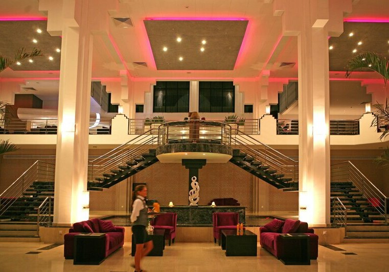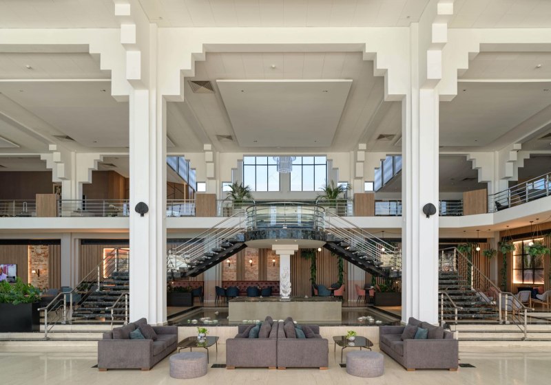 Die Anlage ist klar gegliedert: 303 Zimmer, Rezeption und einladende Lobbybereiche gehen in Gartenflächen, Sonnenterrassen und zwei Außenpools über. WLAN steht Euch in der gesamten Anlage zur Verfügung. Am Pool und Strand nutzt Ihr Liegen und Schirme inklusive, Badetücher erhaltet Ihr gegen Kaution.