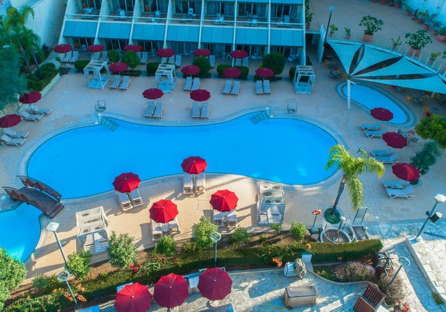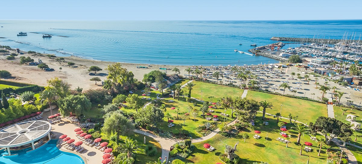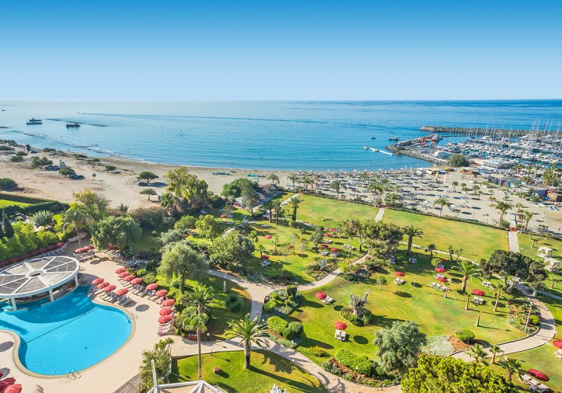 Ihr wohnt in Limassol direkt am ausgezeichneten Sandstrand; die Marina liegt unmittelbar vor dem Hotel. Zur Altstadt sind es etwa 11 Kilometer, der Flughafen Larnaca ist rund 55 Kilometer entfernt, Paphos etwa 70 Kilometer. Eine Bushaltestelle befindet sich in der Nähe, Restaurants, Bars und Einkaufsmöglichkeiten liegen ungefähr 500 Meter entfernt.
