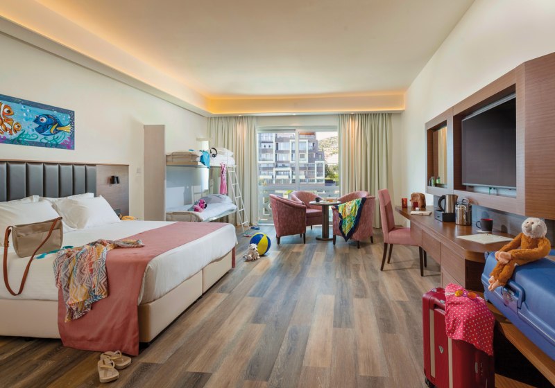 272 Zimmer verteilen sich auf sechs Etagen. Ihr wohnt mit Klimaanlage und Heizung, WLAN, 49-Zoll-Smart-Sat-TV, Safe und Telefon. Ein Minikühlschrank, Kaffee- und Teezubereiter, Bademäntel, Slipper und Föhn gehören dazu. Je nach Kategorie genießt Ihr einen Balkon oder eine Terrasse.
