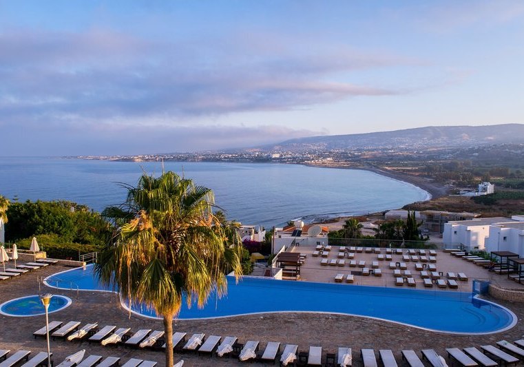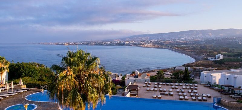 Das Theo Sunset Bay Hotel liegt in Kissonerga, nahe Paphos auf Zypern. Ein Naturstrand befindet sich rund 150 Meter entfernt, Kissonerga selbst in etwa 400 Metern. Bis ins Ortszentrum von Paphos sind es rund 9 Kilometer, wodurch Ihr zwischen ruhiger Basis und städtischer Abwechslung flexibel bleibt. Der Flughafen Paphos liegt circa 18 Kilometer entfernt, Larnaca etwa 140 Kilometer.