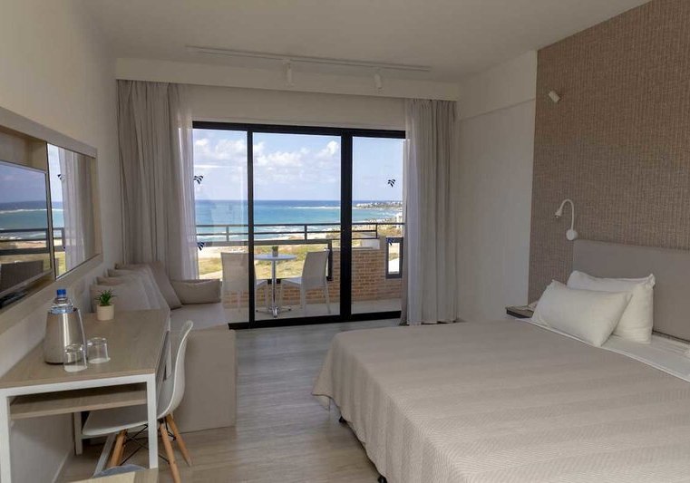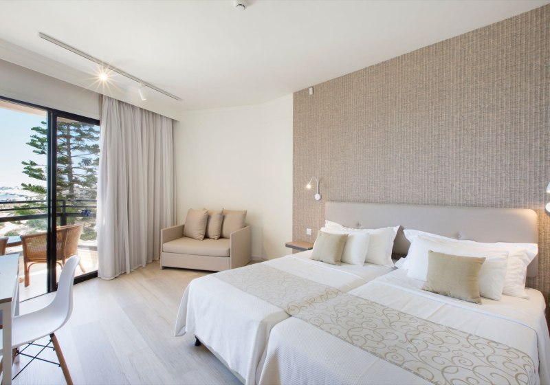 In den Zimmern erwartet Euch eine klare Ausstattung mit Bad oder Dusche/WC, individuell regulierbarer Klimaanlage, Pflegeprodukten und Föhn. Ein 32"-Satelliten-TV mit Musikkanälen, Telefon, Safe und inklusive WLAN runden den Komfort ab. Balkon gehört zur Grundausstattung; buchbar sind Varianten mit seitlichem oder direktem Meerblick für den ersten Kaffee draußen.