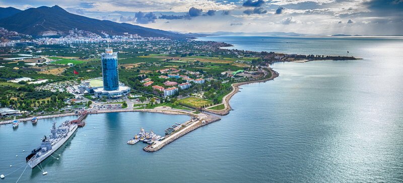Ihr wohnt in Izmir mit direktem Bezug zum Meer, das nur 20 Meter entfernt liegt. Strand und Promenade erreicht Ihr in rund 50 Metern. Taxi-Stand und öffentlicher Nahverkehr liegen ebenfalls bei 50 Metern. Zum Flughafen ADB fahrt Ihr etwa 16 Kilometer, nach Kuşadası rund 103 Kilometer. Highlight: Meer und Strand in wenigen Schritten erreichbar.