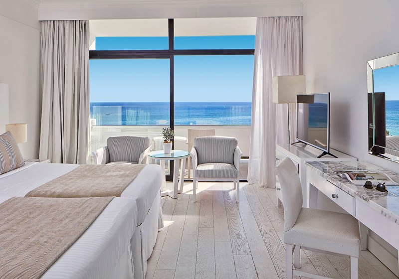 Die Zimmer sind auf komfortable Details ausgelegt: Klimaanlage/Heizung, WLAN, Sat‑TV, Safe sowie Kaffee‑/Teezubereiter und Minibar stehen bereit. Bad oder Dusche/WC, Bademäntel, Slipper und Föhn sorgen für angenehme Routinen. Ein Balkon erweitert den Wohnraum. Zimmer mit seitlichem oder direktem Meerblick setzt Ihr gezielt für Euren Ausblick. Highlight: Meerblick-Option – seitlich oder frontal, ganz nach Wunsch.