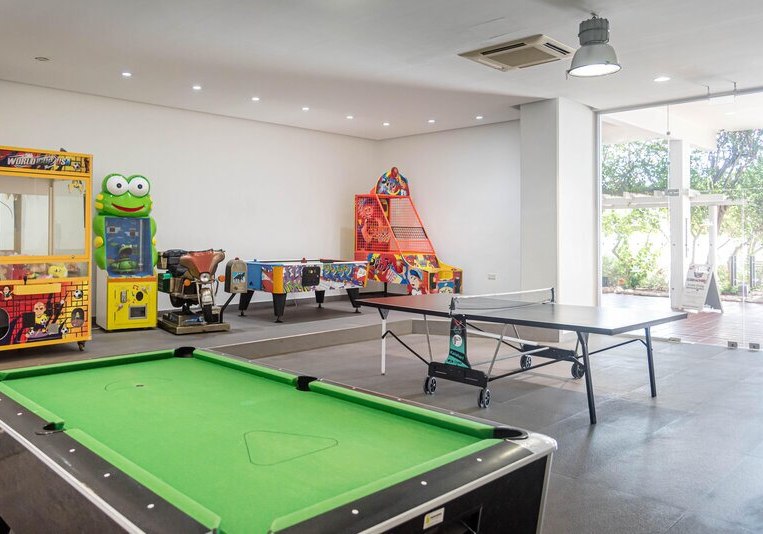 - Rackets & Gym: 3 Tennisplätze, Squash, Tischtennis und Fitnessbereich vorhanden.