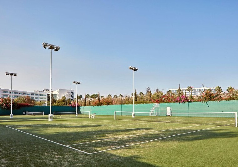 Sportlich legt Grecian Bay Hotel eine breite Basis: Drei Tennissandplätze, Squashcourt, Tischtennis und ein gut ausgestatteter Fitnessbereich schaffen Struktur für tägliche Routinen. Ergänzt wird dies durch Aerobic und Wasseraerobic. So bleibt Ihr zwischen Strand und Anlage aktiv, ohne lange Wege. Highlight: Drei Sandplätze und Squash – klare Optionen für Racketsport.