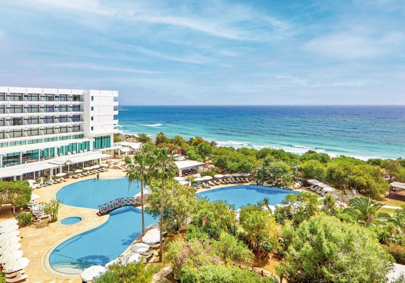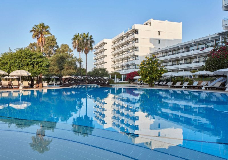 Willkommen im Grecian Bay Hotel, direkt an einer feinsandigen, flach abfallenden Badebucht von Ayia Napa. Die Atmosphäre wirkt entspannt und aufgeräumt, mit großzügiger Gartenanlage, ruhigen Sitzecken und einer weitläufigen Poollandschaft. Familien, Strandurlauber und Naturliebhaber finden hier klare Strukturen, kurze Wege zum Meer und viel Raum für gelassenes Sonnen, Baden und unbeschwerte Stunden. Highlight: Direkte Badebucht mit feinem Sand und kurzem Weg in die Ferien am Meer.